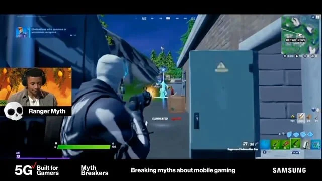 We partnered with Fortnite champion Myth to break the myth about mobile gaming. Myth launched the new Samsung Galaxy S21 by playing Fortnite on mobile over 5G Ultra Wideband in scenarios that represent the types of outdoor places where it’s now possible to game at the highest level.